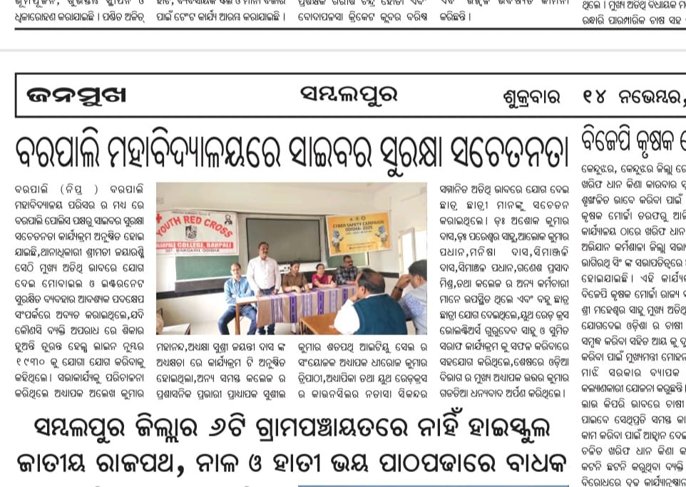 Barpali College Hosts Cyber Security Camp in Collaboration with IIC, Police Station Barpali on 13-11-2025